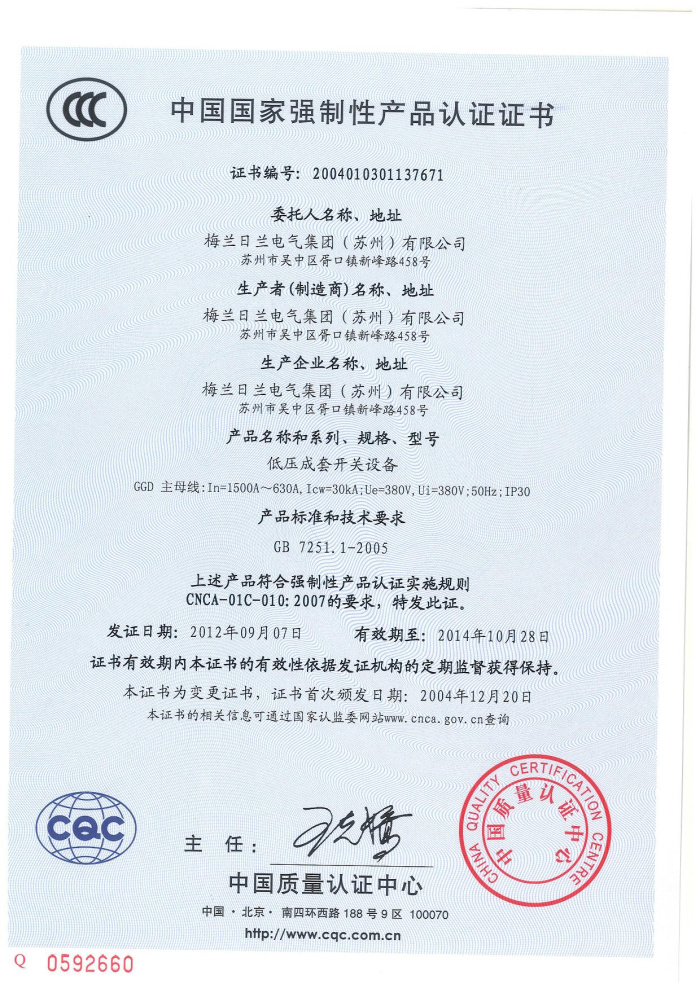 (成套)GGD主母線(xiàn)資質(zhì)證書(shū)