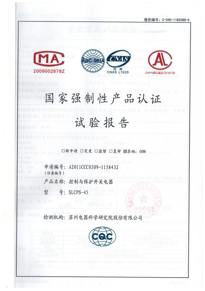 SLCPS-45控制與保護開關(guān)資質(zhì)證書