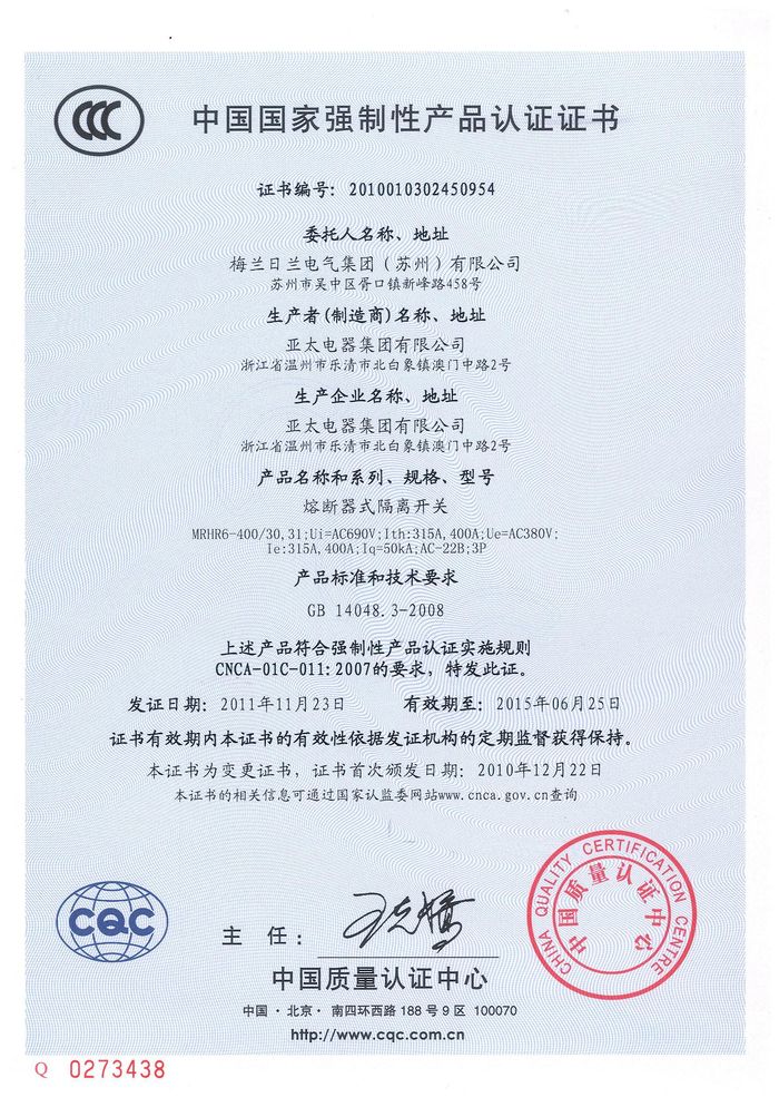 MRHRR-400熔斷隔離開(kāi)關(guān)資質(zhì)證書(shū)