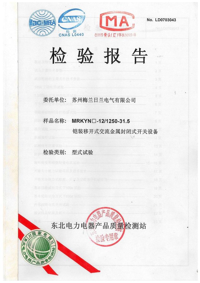 (成套)MRKYN封閉開關(guān)(高壓柜)資質(zhì)證書