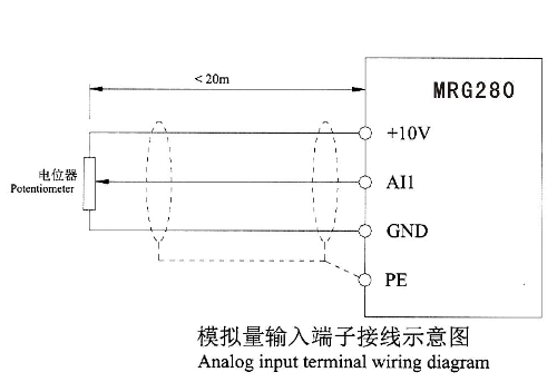 1個(gè)模擬量輸入端子,支持-10V~10V電壓輸入,